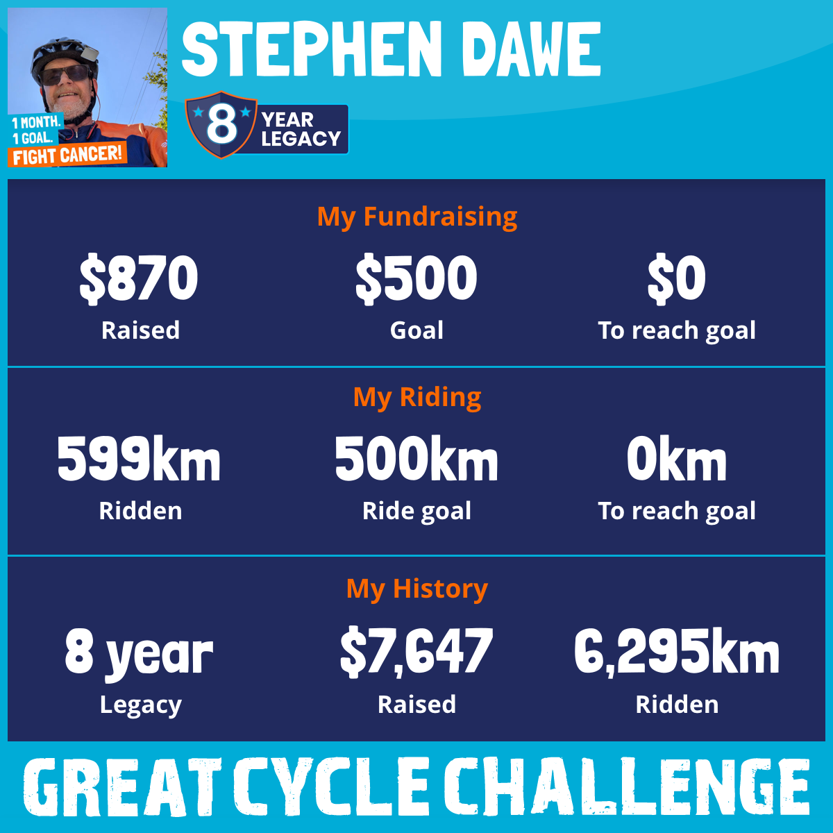 I am riding 500 km in memory of my mum, Pam Dawe. Please sponsor me and support my challenge to fight kids' cancer and save little lives.