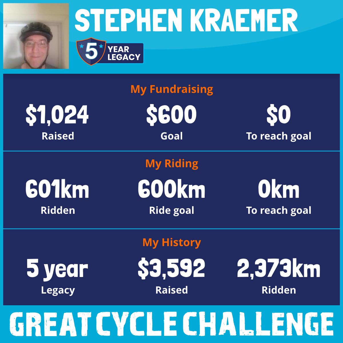 I am riding 620 km in memory of All my family and friends that have had cancer and continue to battle cancer.. Please sponsor me and support my challenge to fight kids' cancer and save little lives.