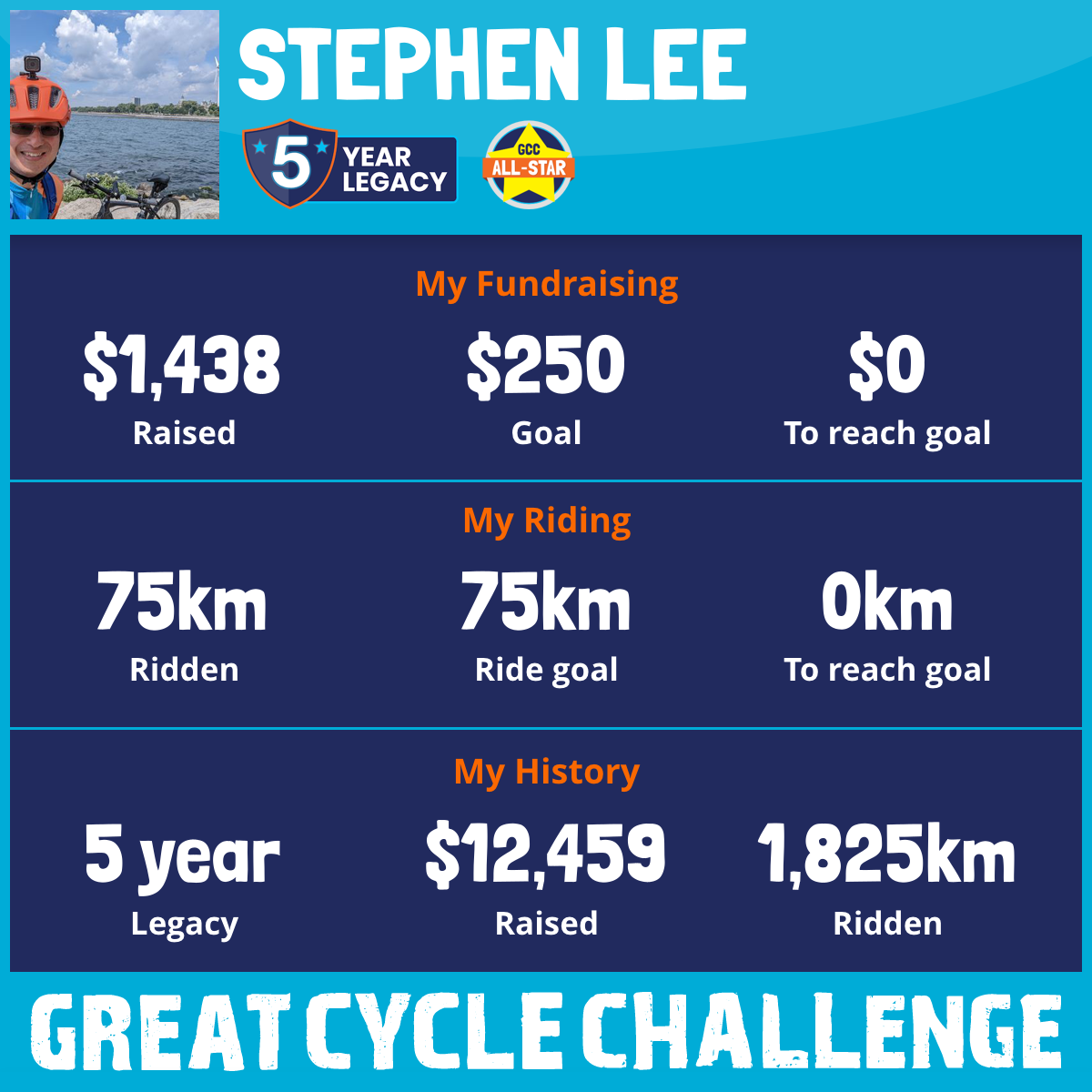 151 km Ridden$1,968 Raised2024