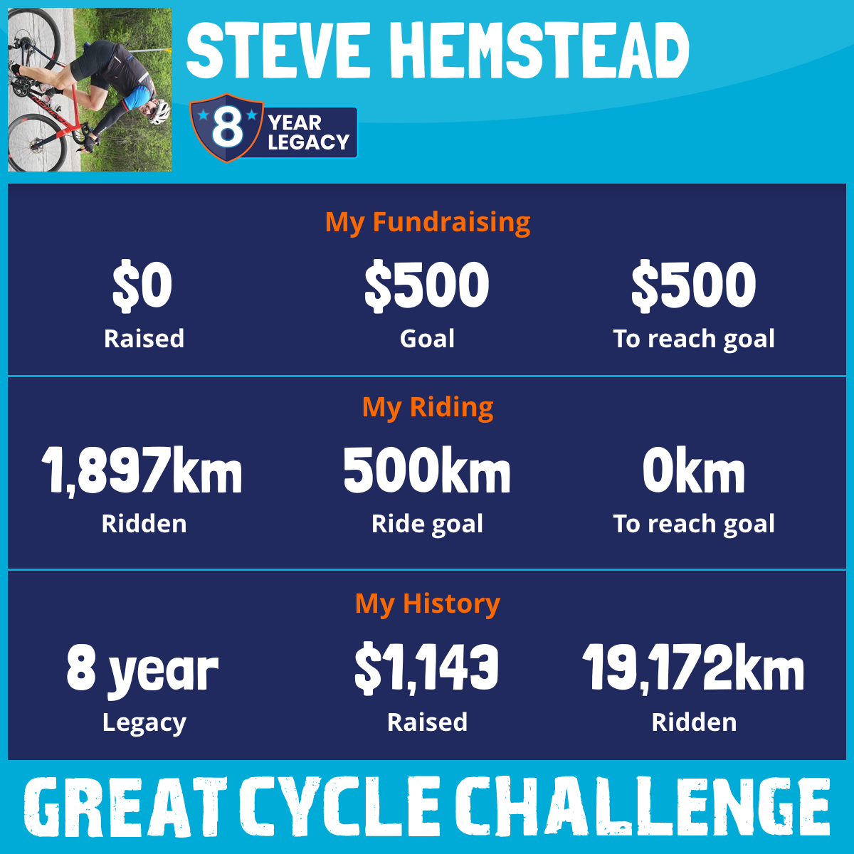 3,072 km Ridden$141 Raised2019