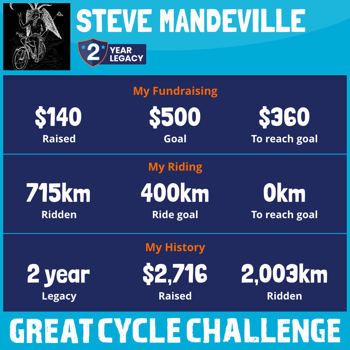 696 km Ridden$140 Raised2025
