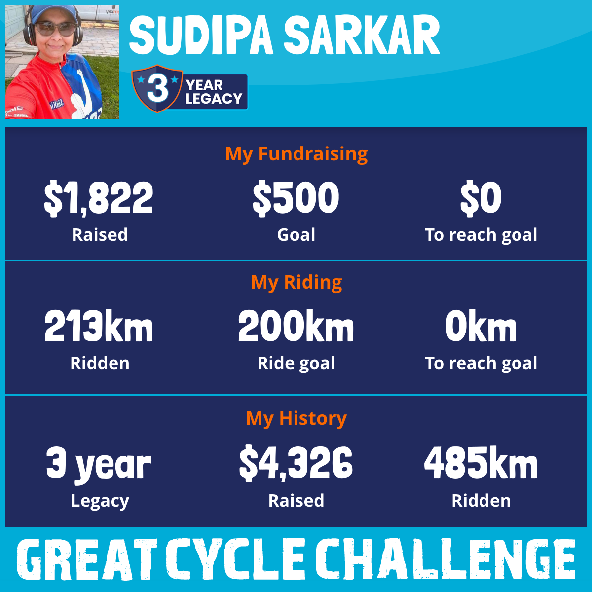 213 km Ridden$1,822 Raised2026