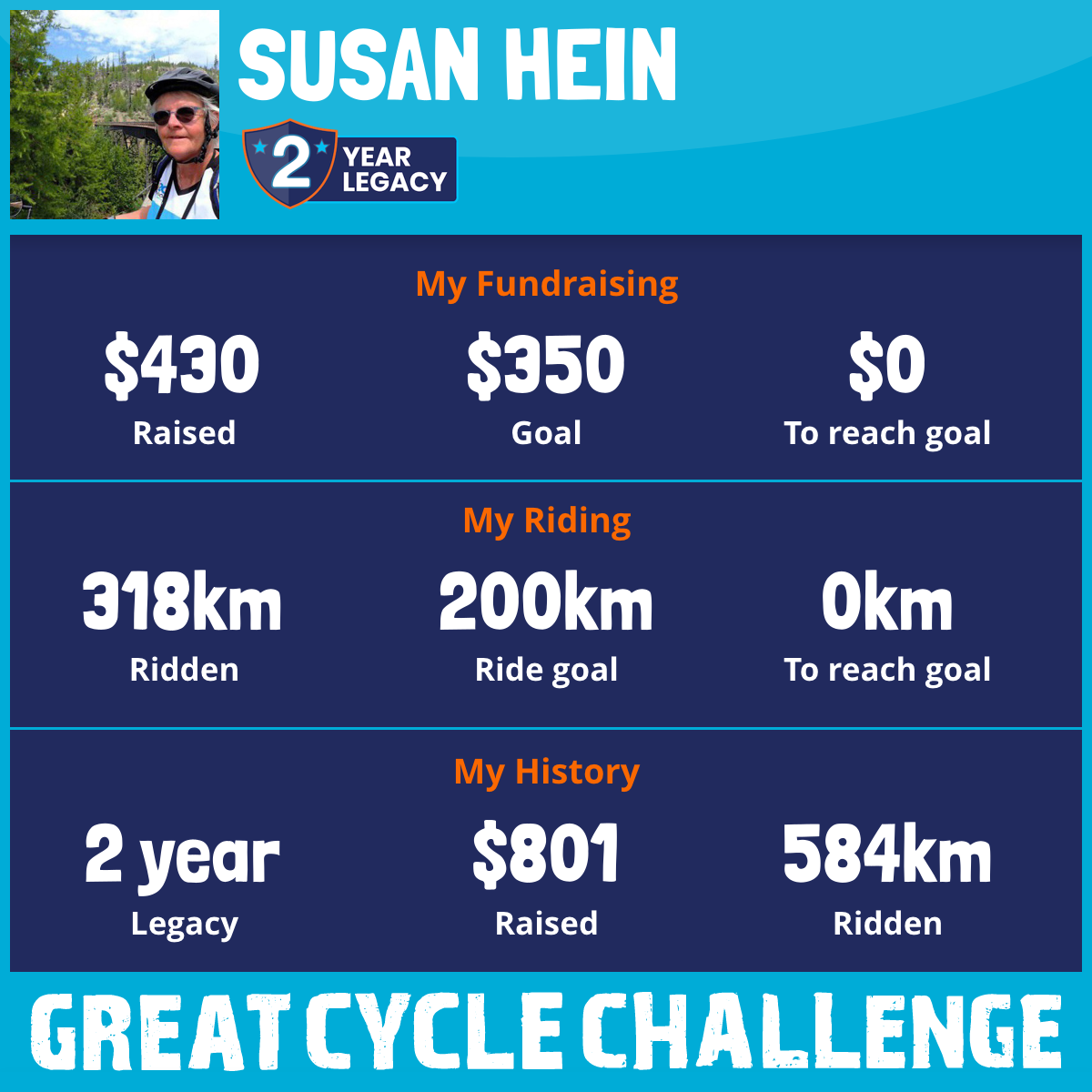 AUGUST 23 - 216 KMS RIDDEN! I HAVE MET MY 200 KMS GOAL AND GOING ON TO 300 KMS. That is my commitment to help fight Kids' Cancer!!