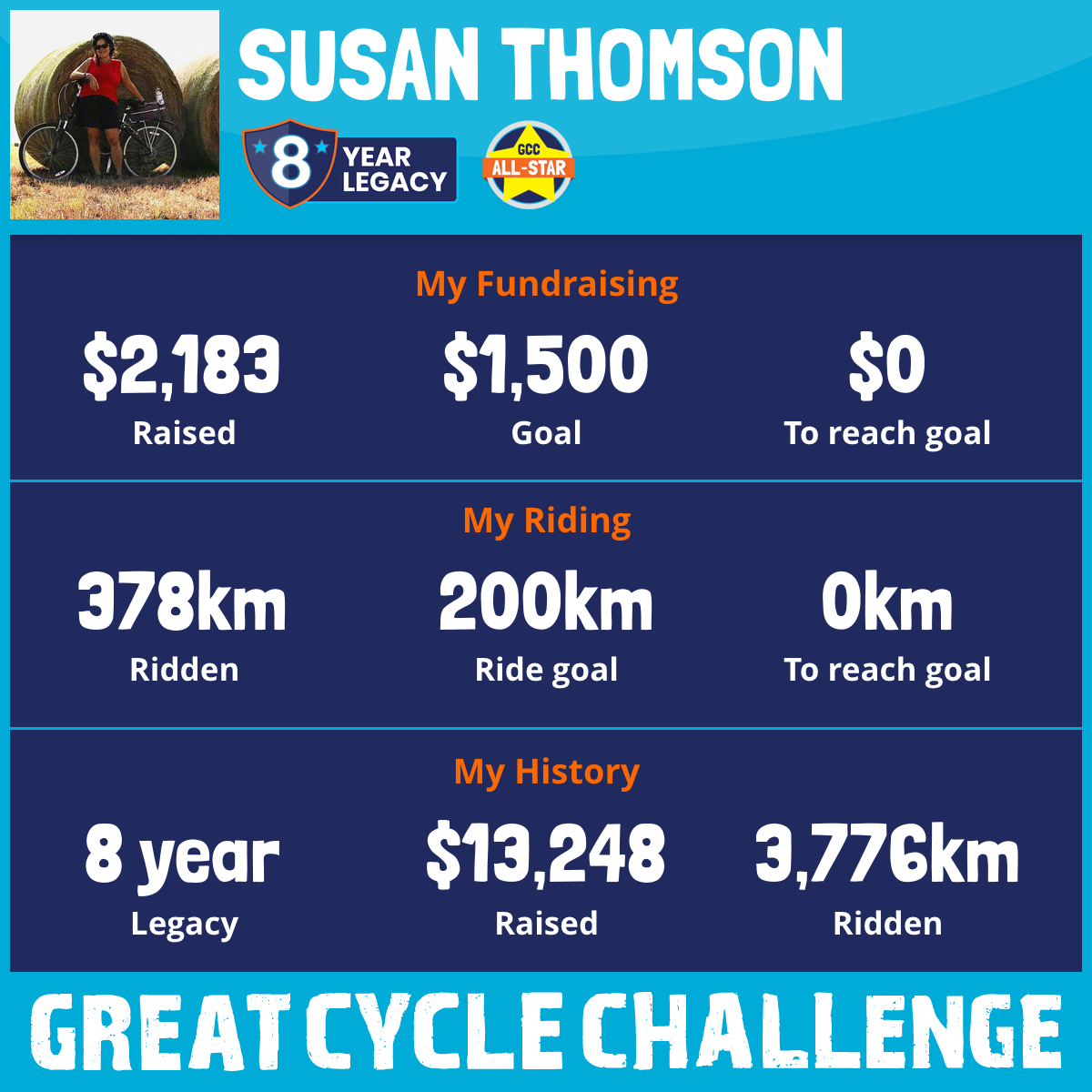 378 km Ridden$2,183 Raised2025