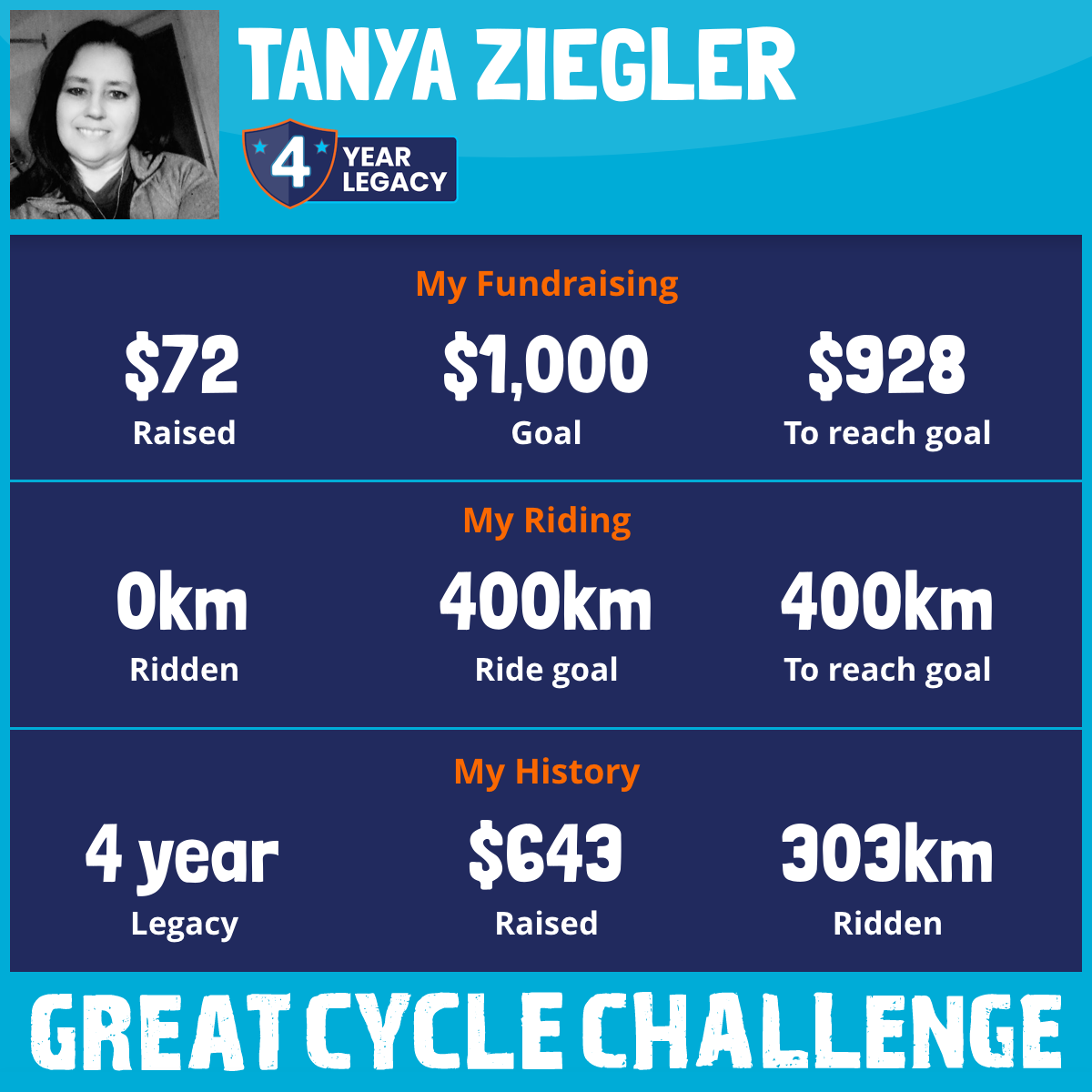 303 km Ridden$500 Raised2020