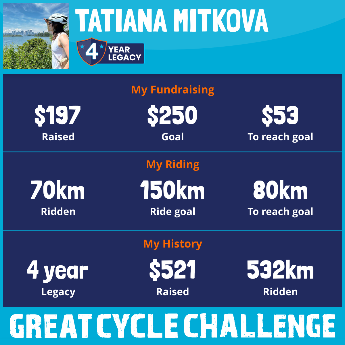70 km Ridden$197 Raised2026