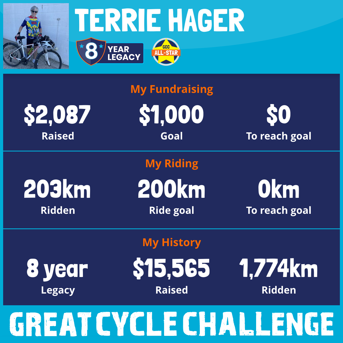 203 km Ridden$2,087 Raised2026