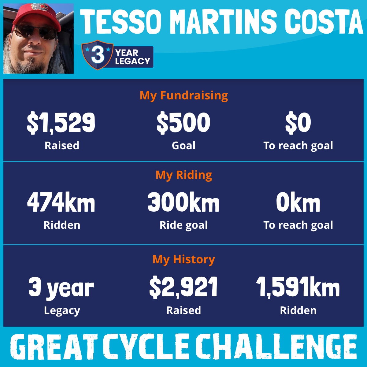 474 km Ridden$1,529 Raised2025