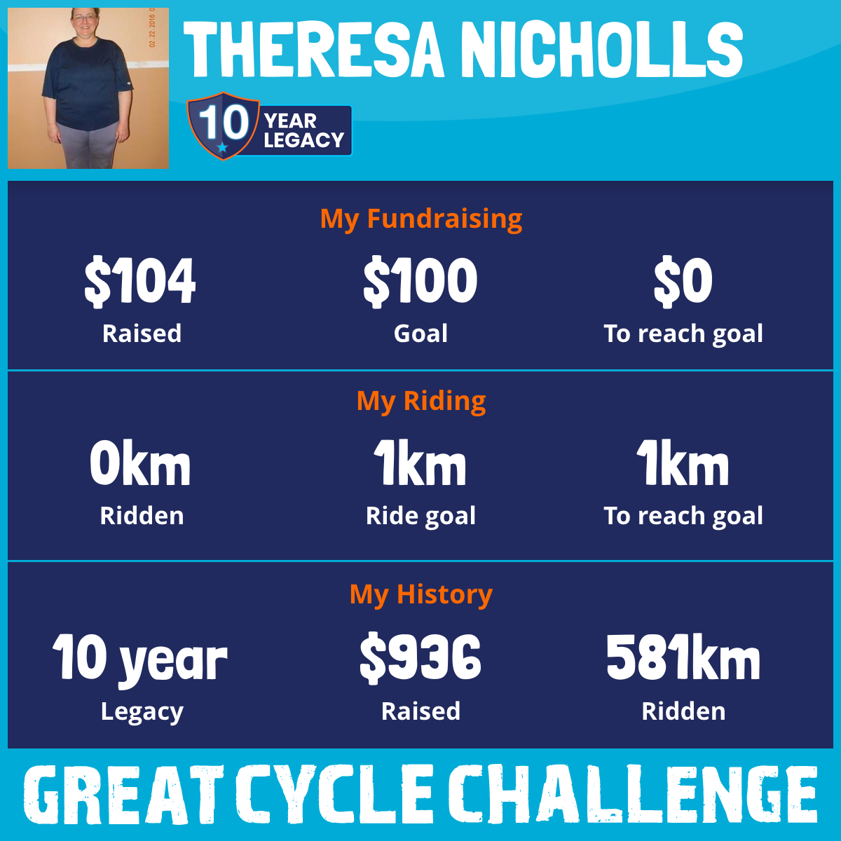 I am riding 100 km in memory of Julie. Please sponsor me and support my challenge to fight kids' cancer and save little lives.
