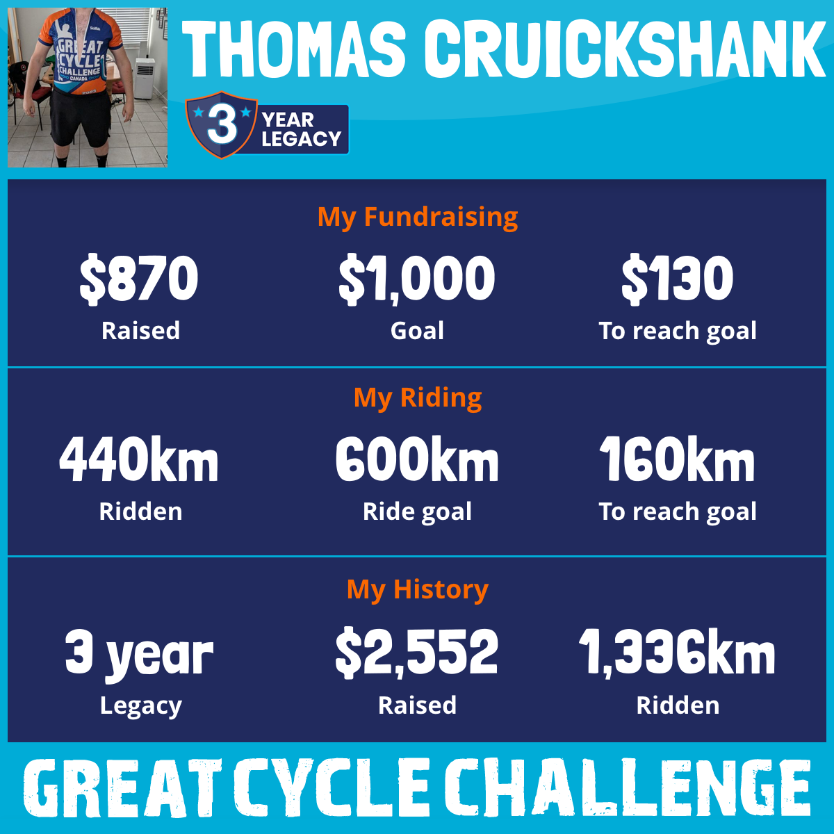 I am riding 600 km in memory of Jordan. Please sponsor me and support my challenge to fight kids' cancer and save little lives.