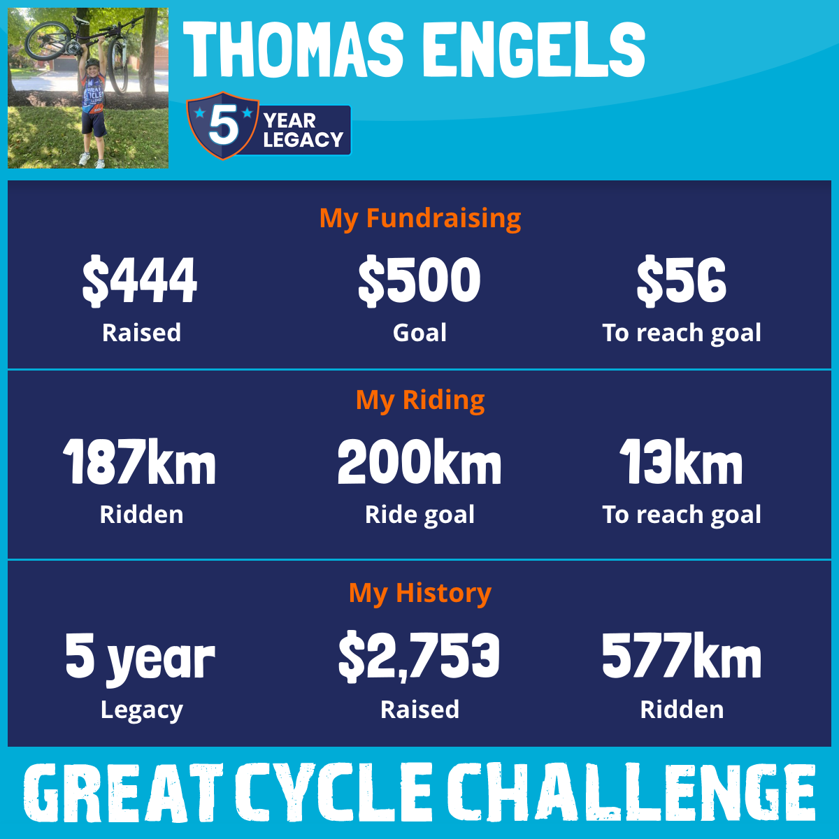 187 km Ridden$444 Raised2026