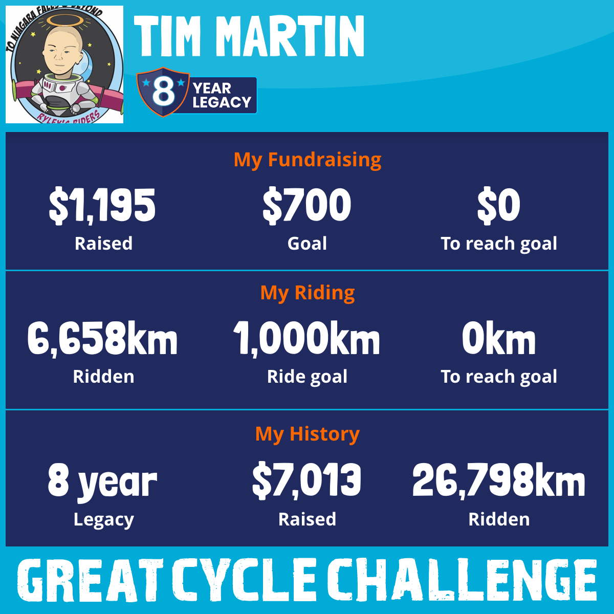 This August, I am taking part in the Great Cycle Challenge to fight kids' cancer for my 8th year in memory of my son Ryley James Roy Martin