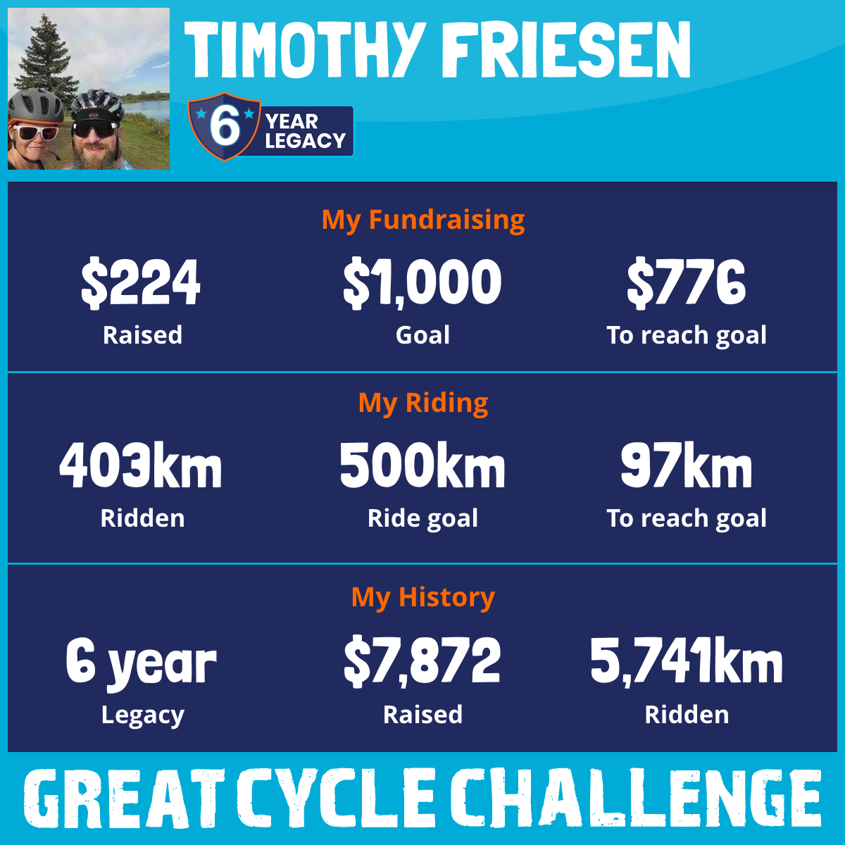 So, I am raising funds through the Great Cycle Challenge to help these kids, and support the SickKids Foundation to allow them to continue their work in developing treatments and finding a cure for childhood cancer.