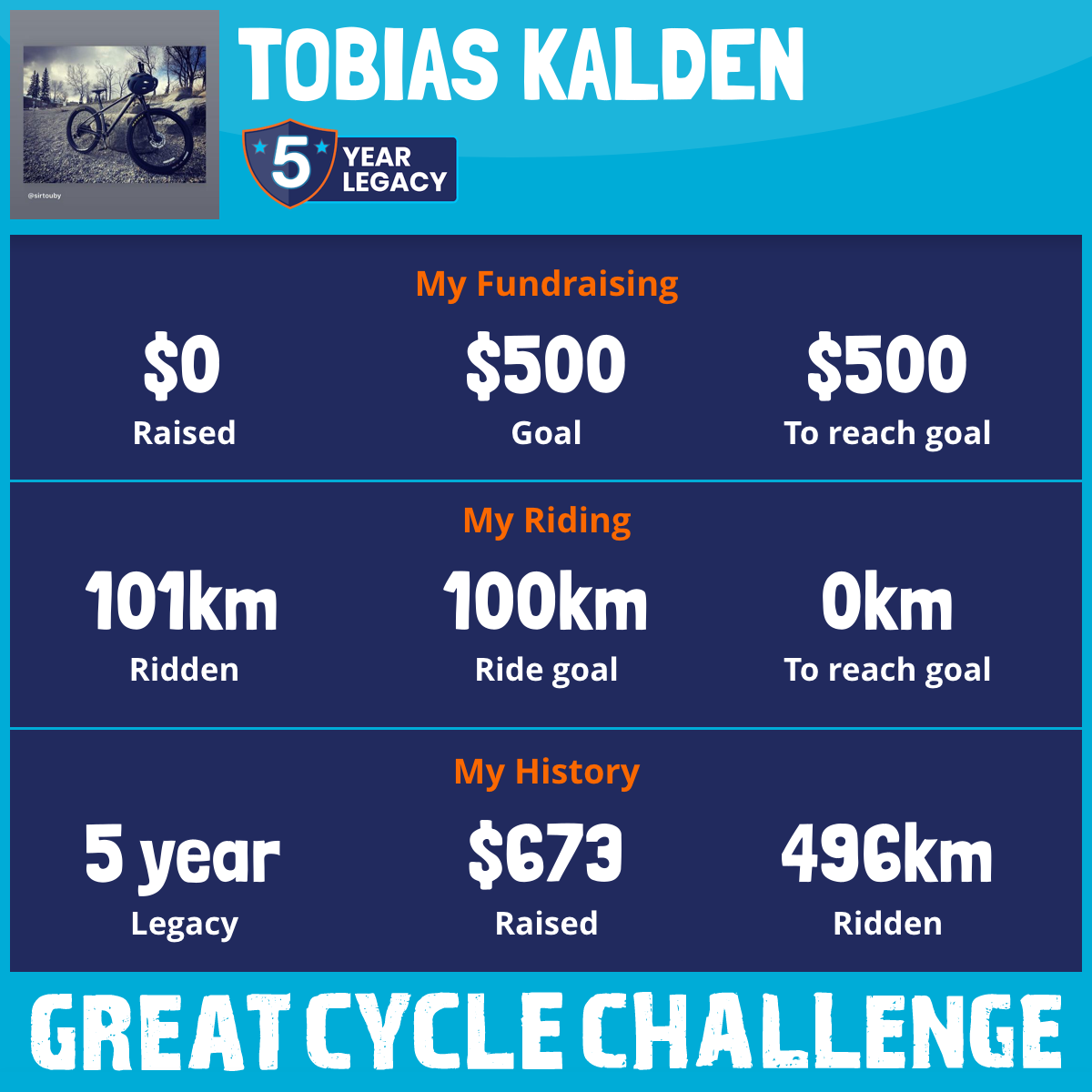 218 km Ridden$509 Raised2020