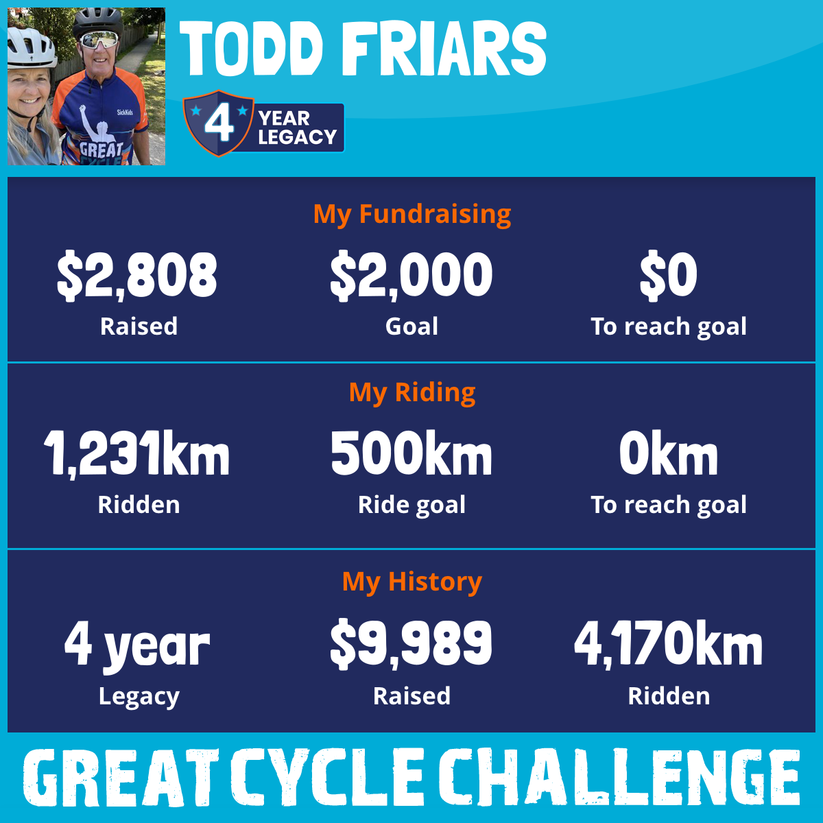 1,231 km Ridden$2,808 Raised2025