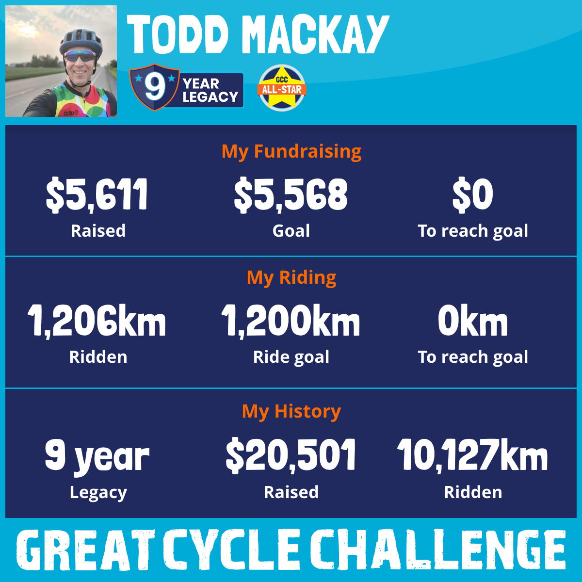 1,206 km Ridden$5,611 Raised2025