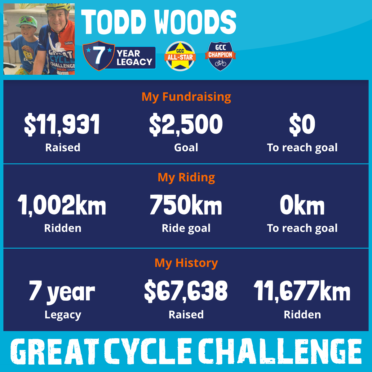 1,002 km Ridden$11,931 Raised2025