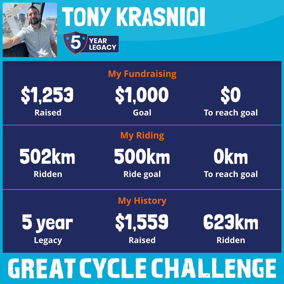 502 km Ridden$1,253 Raised2025