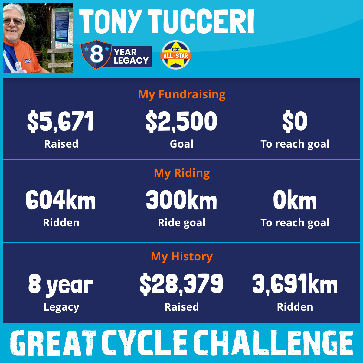 604 km Ridden$5,671 Raised2025