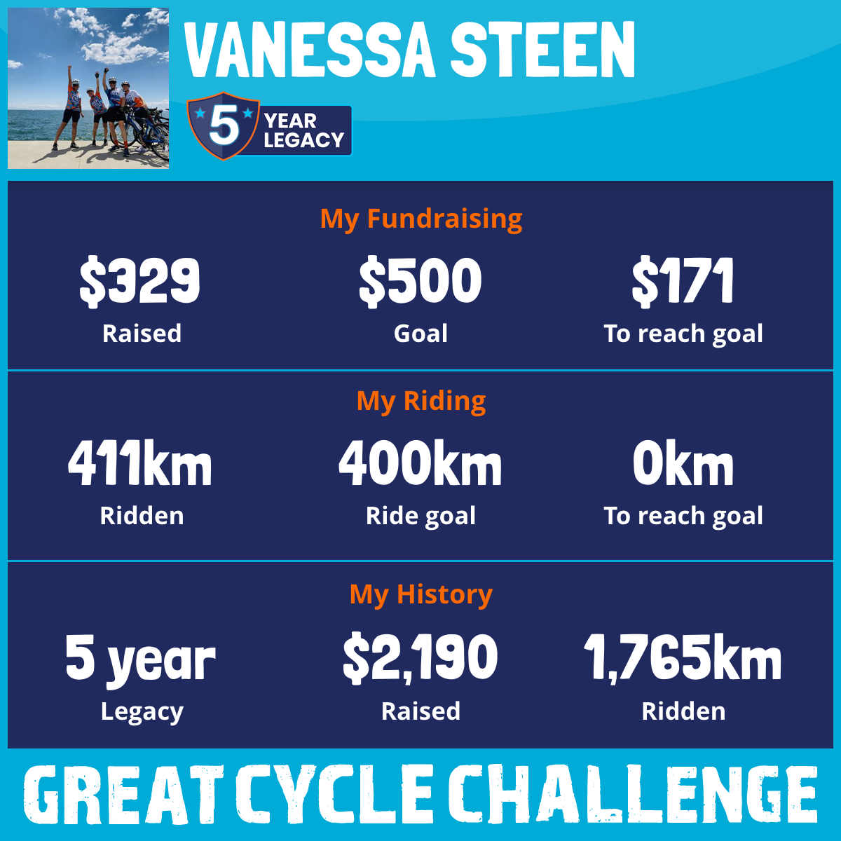 411 km Ridden$329 Raised2025