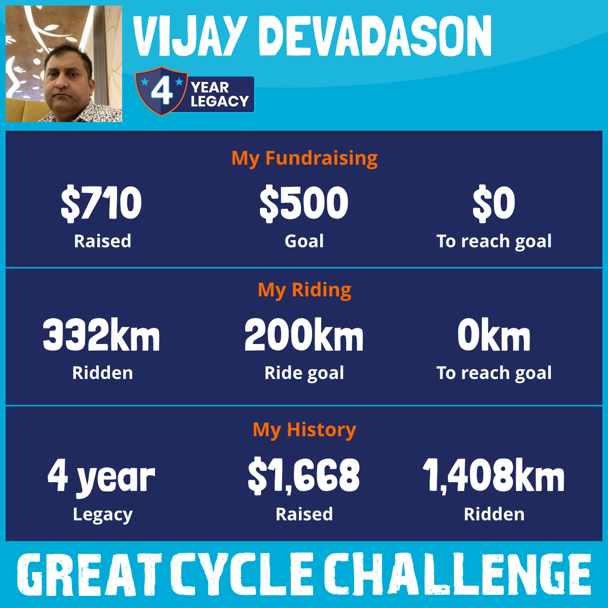 332 km Ridden$710 Raised2025