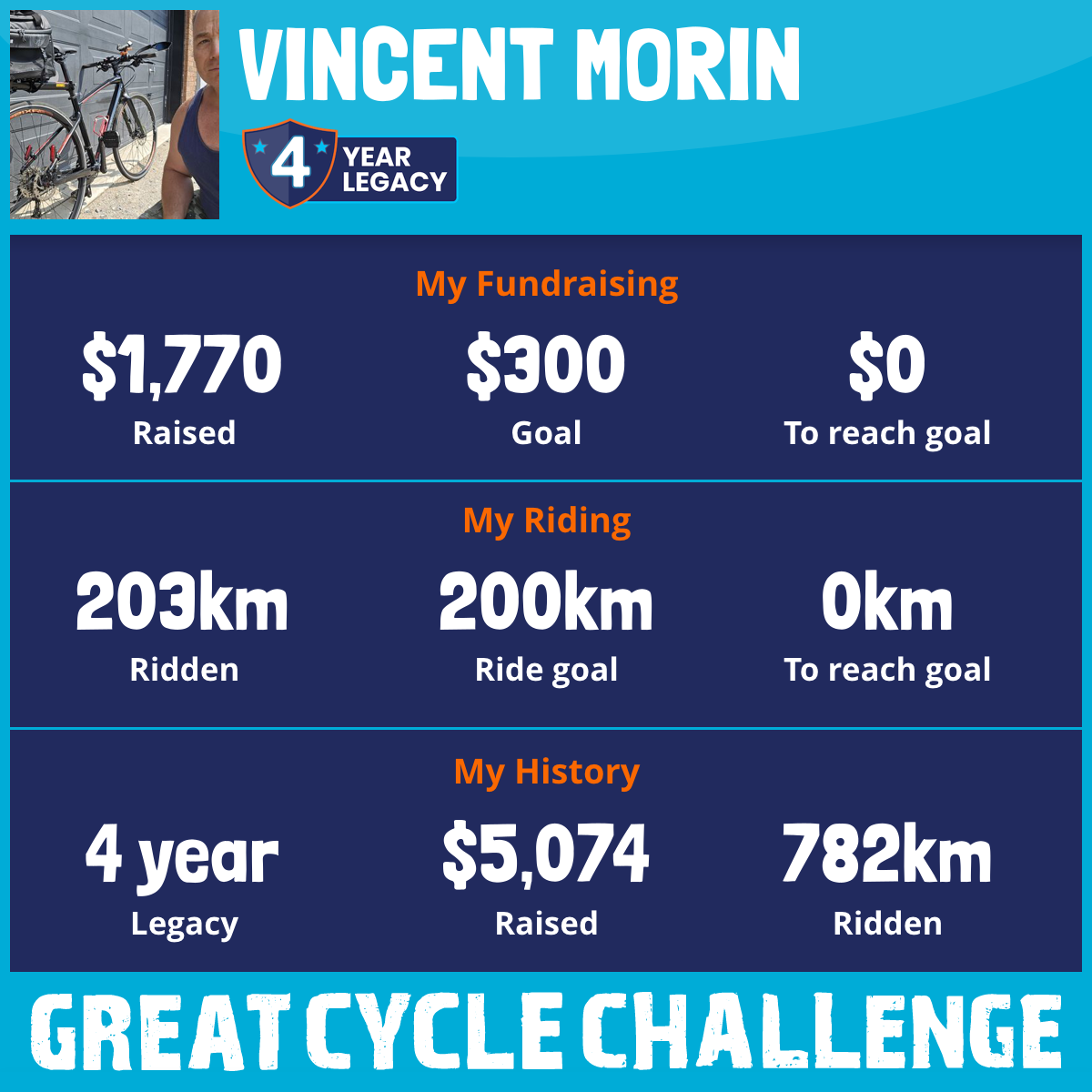 203 km Ridden$1,770 Raised2025