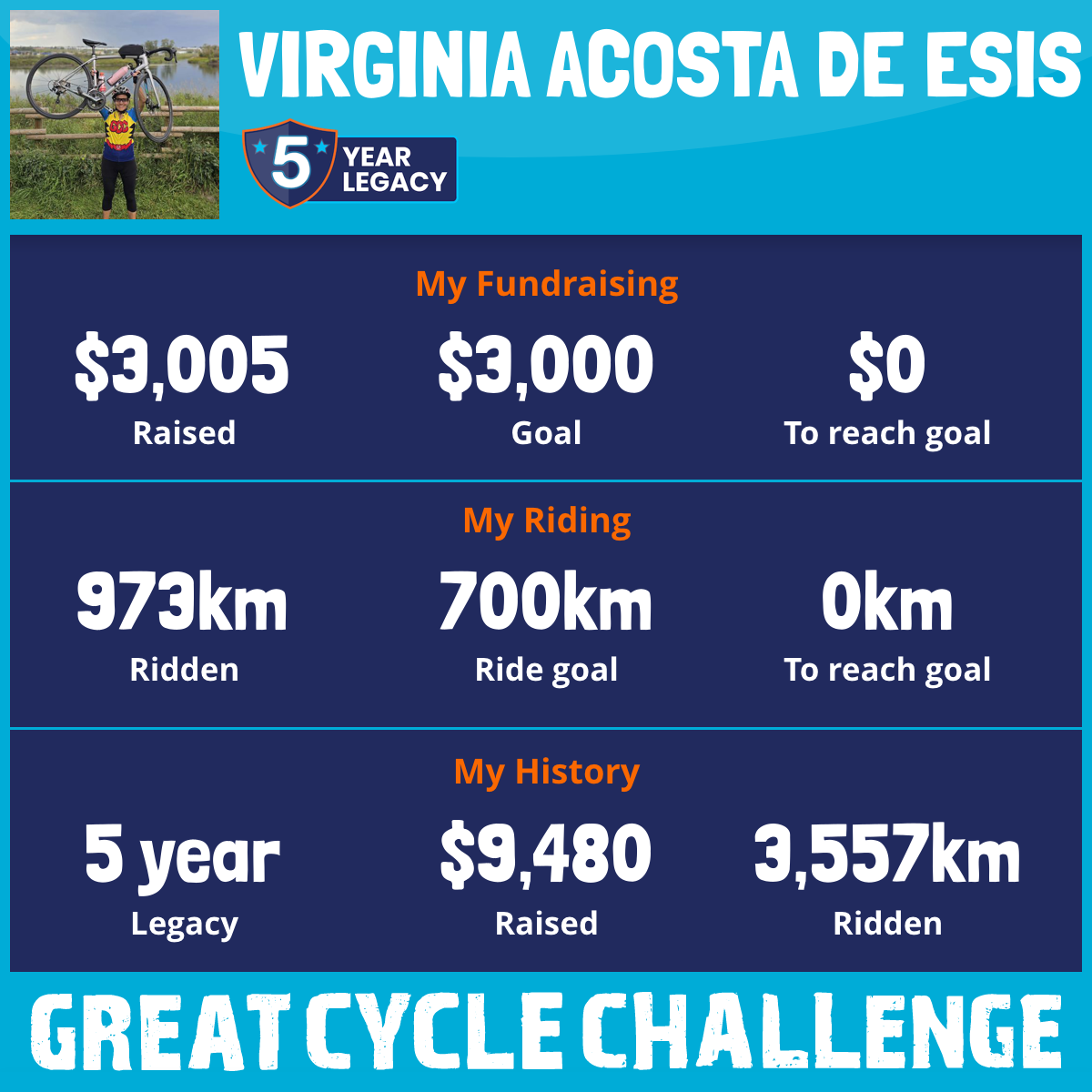 973 km Ridden$3,005 Raised2025