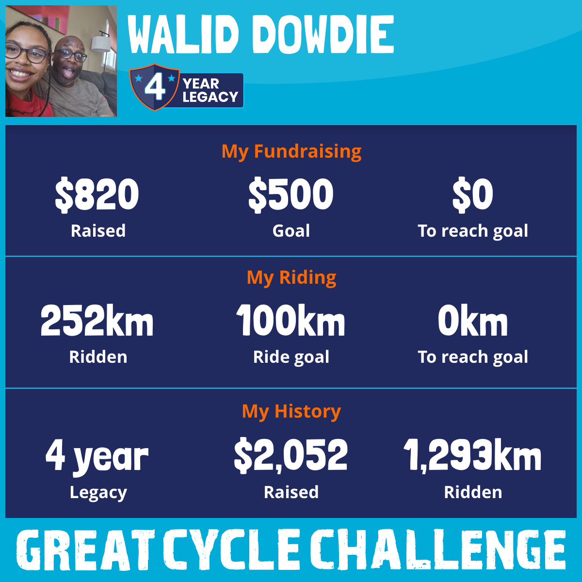 252 km Ridden$820 Raised2026