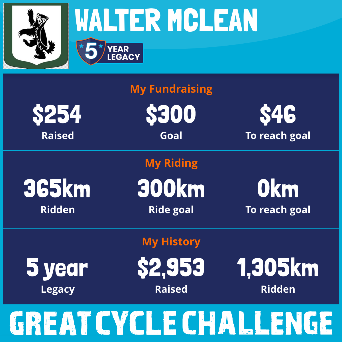 I am riding 300 km for my loved one, Al McLean. Please sponsor me and support my challenge to fight kids' cancer and save little lives.