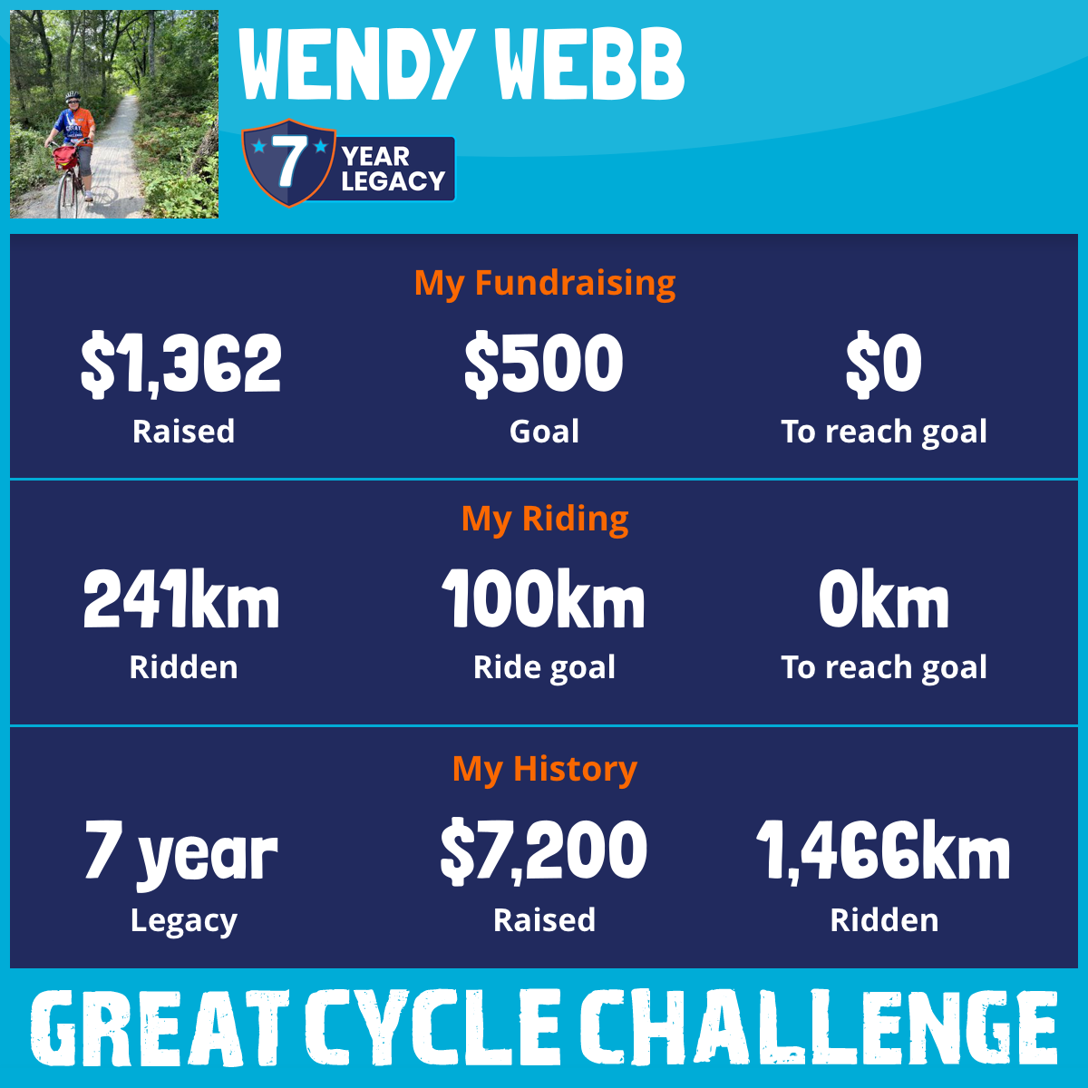 241 km Ridden$1,362 Raised2025