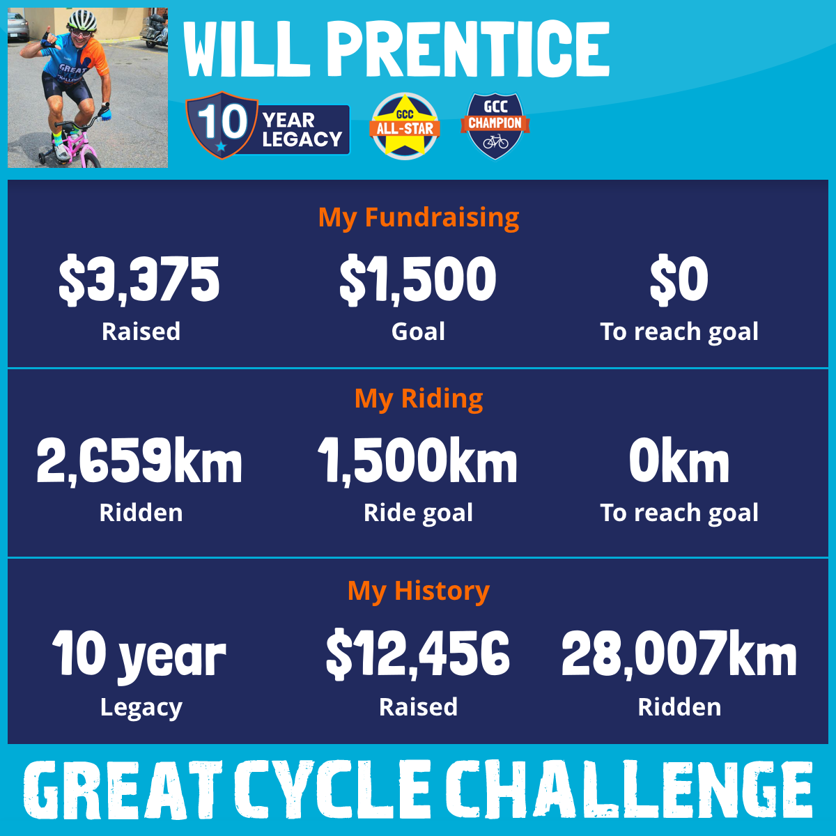 2,852 km Ridden$3,375 Raised2026