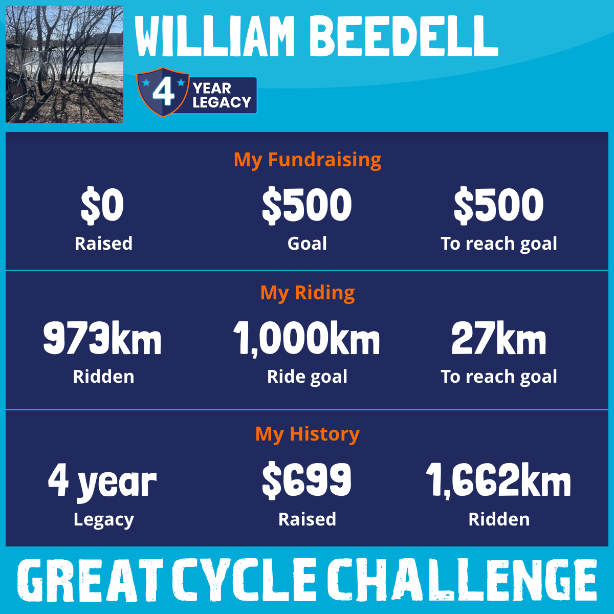 I am riding 1,000 km to fight kids' cancer and save little lives. Please sponsor me to support my challenge!