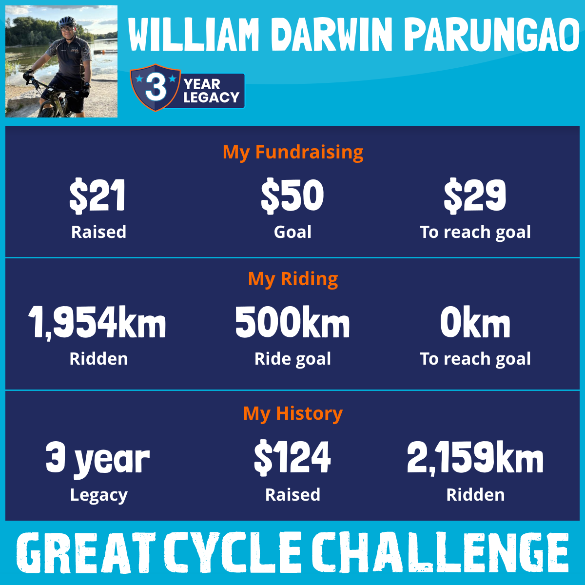 1,954 km Ridden$21 Raised2025