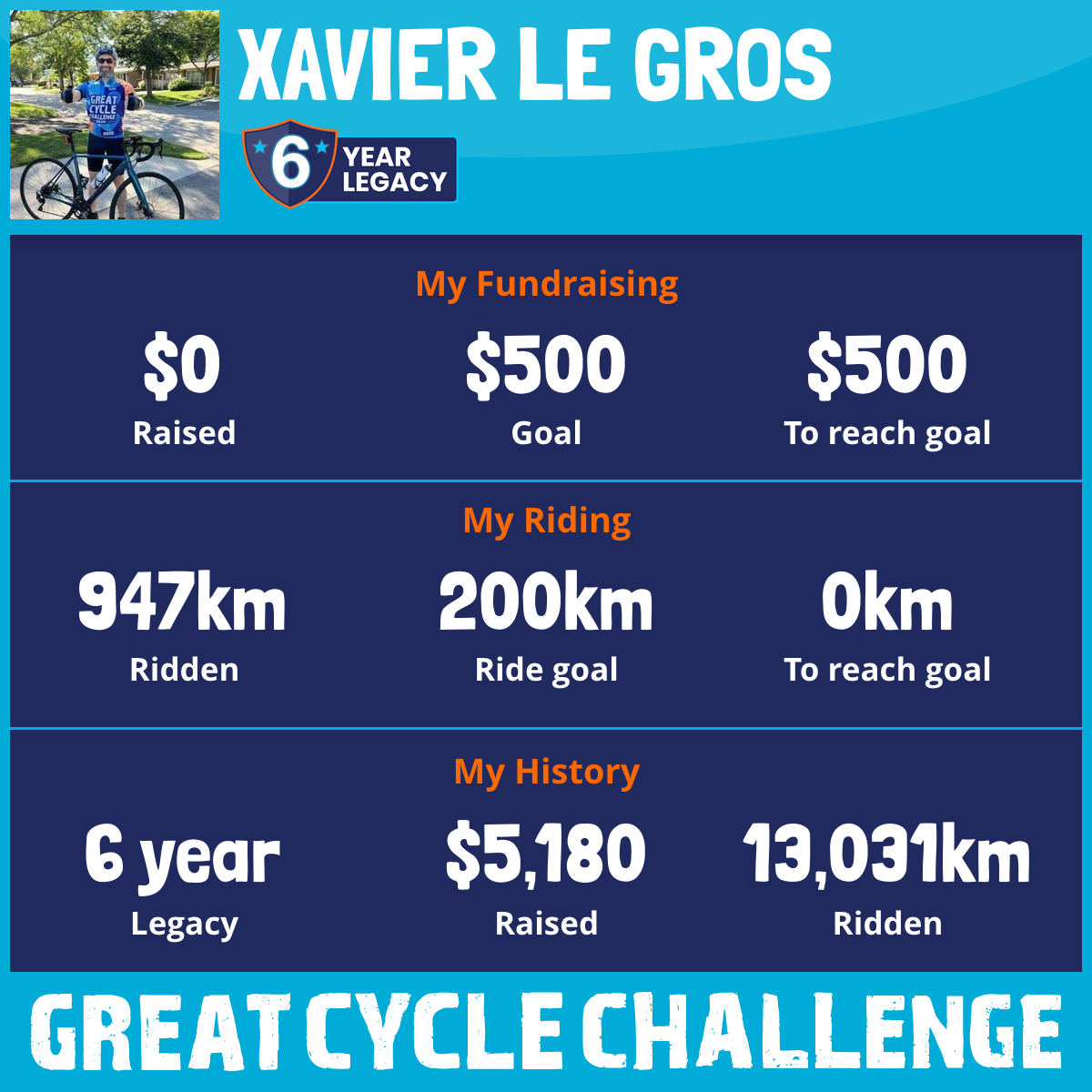 5,009 km Ridden$2,151 Raised2023