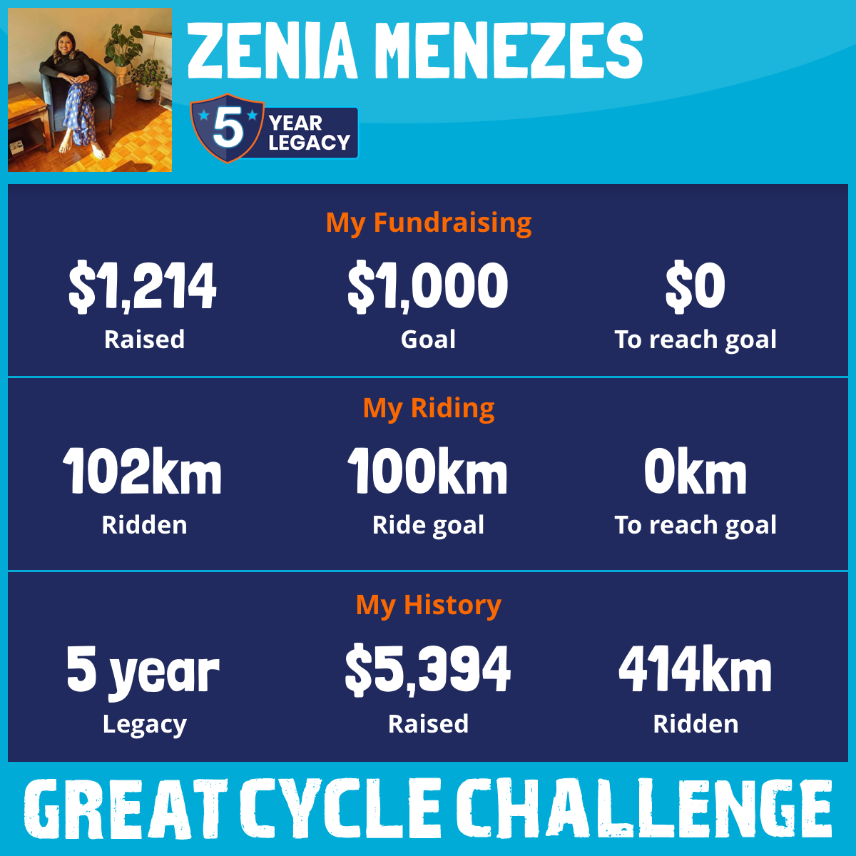 114 km Ridden$1,088 Raised2023