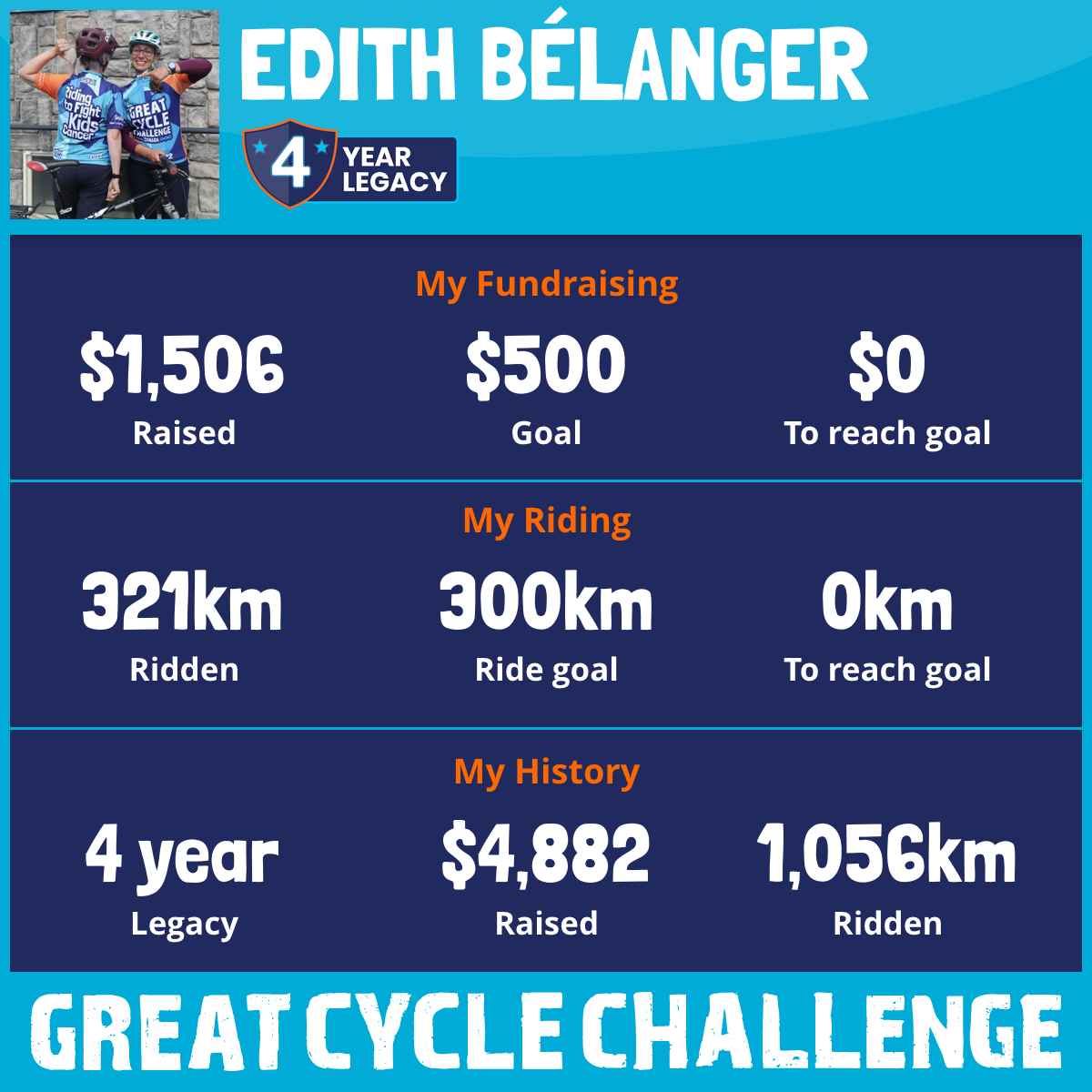 321 km Ridden$1,506 Raised2025