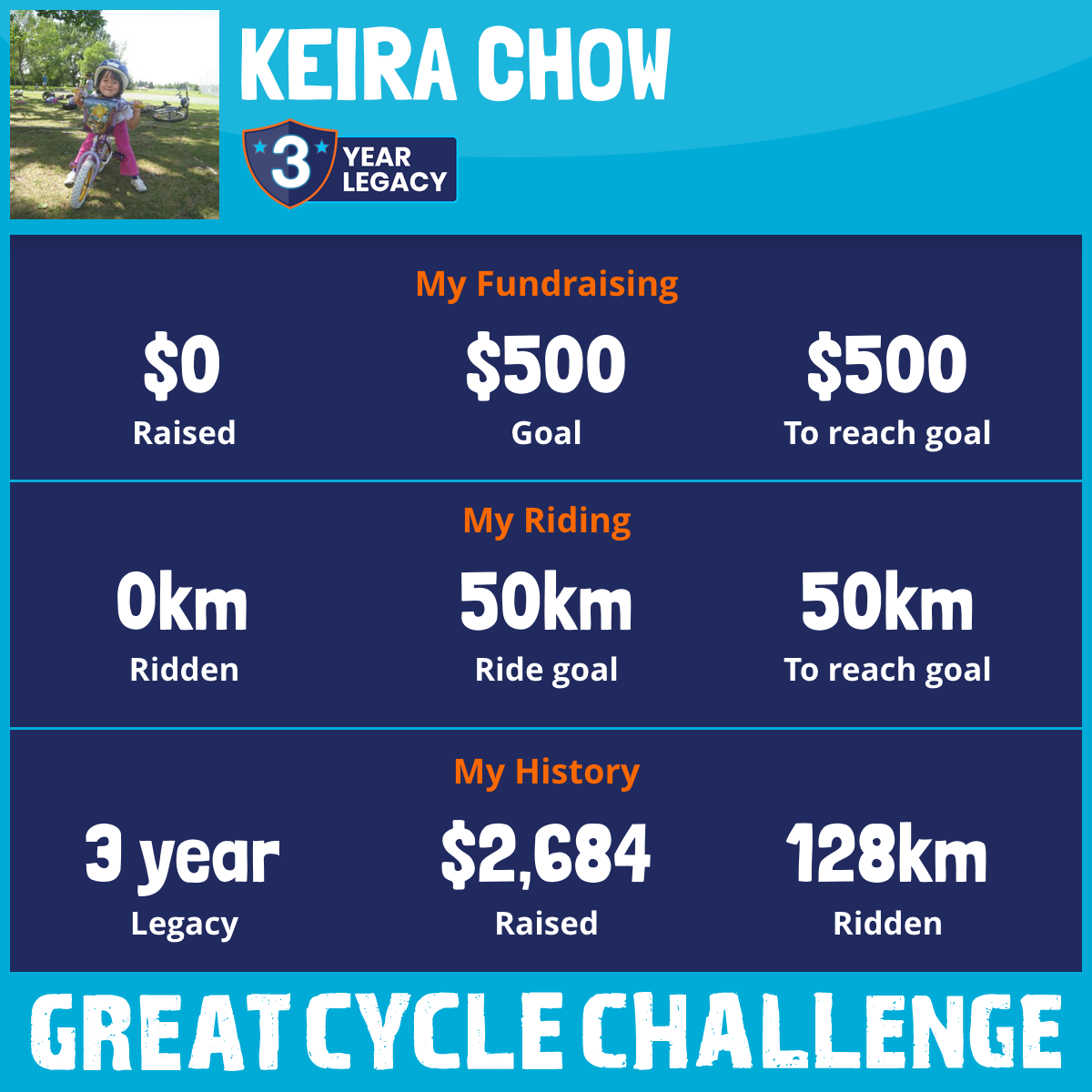 I am riding 75 km for my Gua-ma. Please sponsor me and support my challenge to fight kids' cancer and save little lives.
