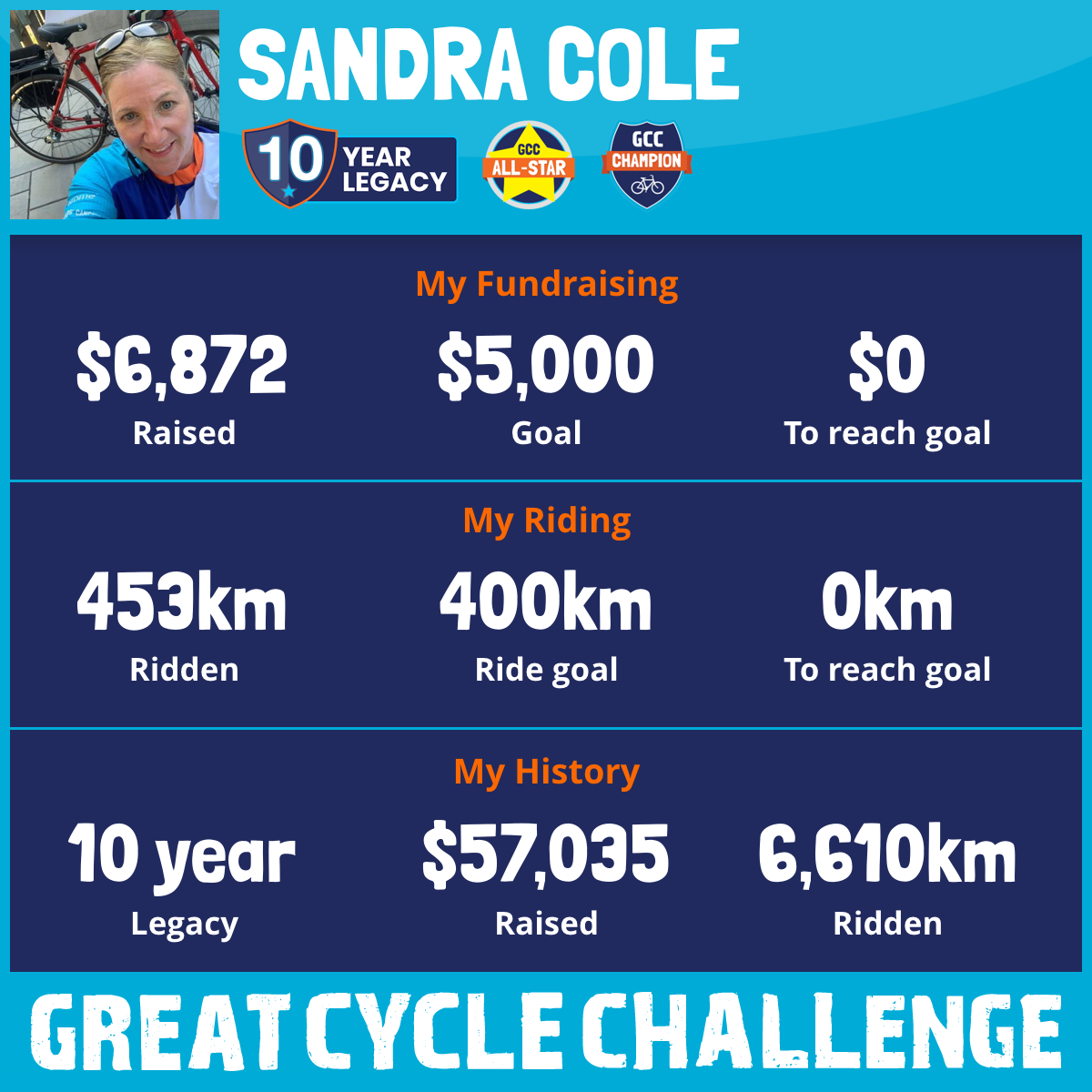 453 km Ridden$6,872 Raised2025