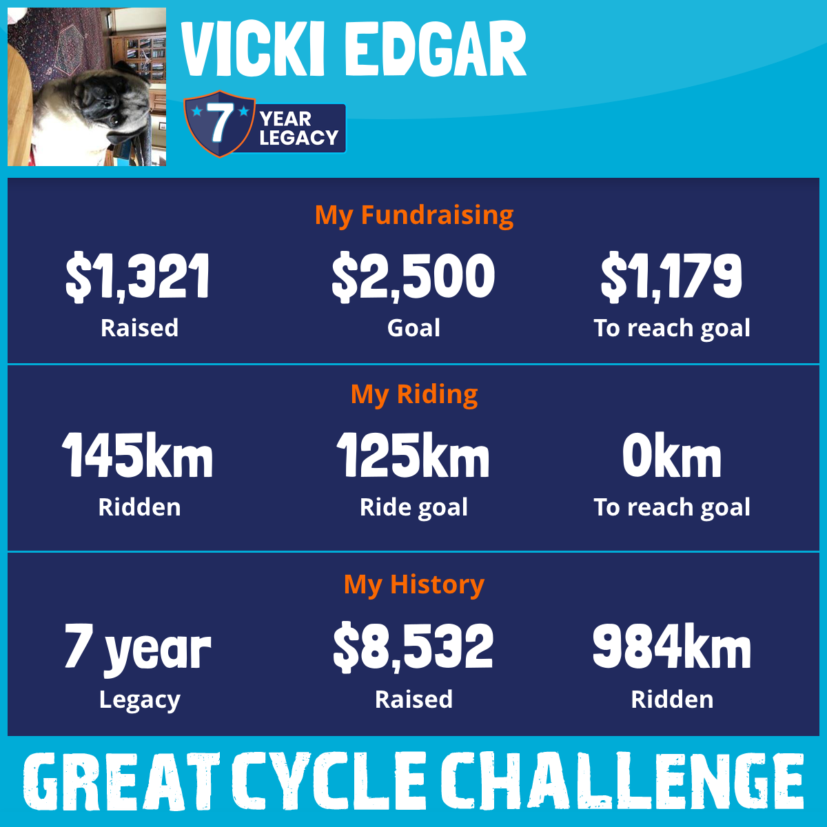 145 km Ridden$1,321 Raised2026